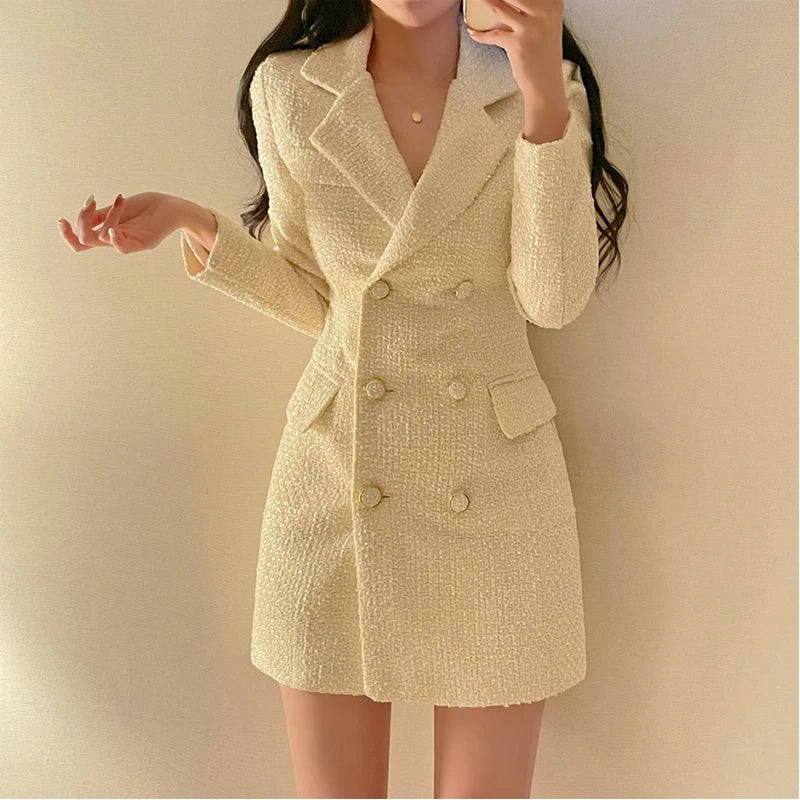 • Double-breasted front and fitted waist for a polished, feminine figure