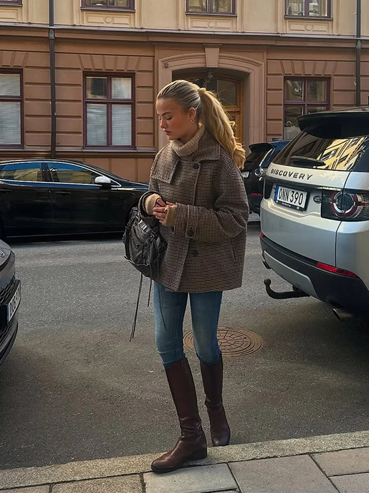 • High-collar design offers elegance and warmth, perfect for autumn and winter layering